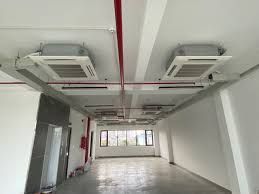 Điều hòa gắn trần: công việc sử dụng điều hòa nối ống gió (gắn trần) chúng ta sở hữu thể tiết kiệm được không gian vì máy đã được treo bên trên trần và không khí sẽ được phân bố khắp không gian xưởng bằng đường nối ống.