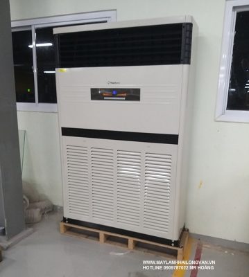 Điều hòa đặt sàn: tương tự như các sản phẩm lạnh tủ đứng thường thấy ở những quán cà phê, cửa hàng được đặt sát tường thổi trực tiếp không khí lạnh vào không có gian nhà xưởng nhưng chỉ khác một cái đó là có công suất lớn hơn.